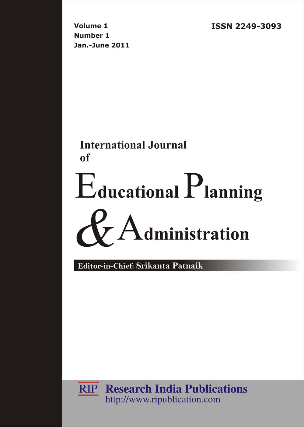 Aims and Scope: The International Journal of Educational Planning & Administration (IJEPA) journal will cater to the needs of managers, directors, principals and above all teachers of educational institutions. This journal deals with the powerful social, economic and technological factors affecting education specifically technical and professional education and presents international knowledge and initiatives designed to help educational administrators. Objectives: It is a fact that educational establishments all over the world struggle with intense pressures in their efforts to deliver higher standards of education across a broader curriculum, with fewer resources. There is no doubt that administrators are the main component to any educational progress and the burden of responsibility increasingly falls on them to adapt positively to external pressures and catalyse action. Secondly, due to the rapid change in the teaching-learning process, educational policy, technological innovations etc., there is lot many factors to discuss and develop. The challenges faced by the administrators will be analysed in this journal, which presents an account of the latest research and practice taking place in the international educational arena. The journal will focus on the nature of educational administration, organizational theory, educational leadership and present day practices. Further it will cover the ethical and moral values, teacher-student relationships, institutional finance, human subjectivity in the sound educational organizations, educational policy and role of research in the educational institution Publication Date and Frequency: Two issues per year. Submission: Authors are requested to submit their papers electronically to submit@ripublication.com with mention journal title (IJEPA) in subject line. Annual Subscription Price: (Outside India) Library/ Institutional: Print : US$320.00 Online Only: US$300.00 Print + Online : US$:360.00 Individual/ Personnel: Print US$160.00 Inside India: Rs. 3500.00
