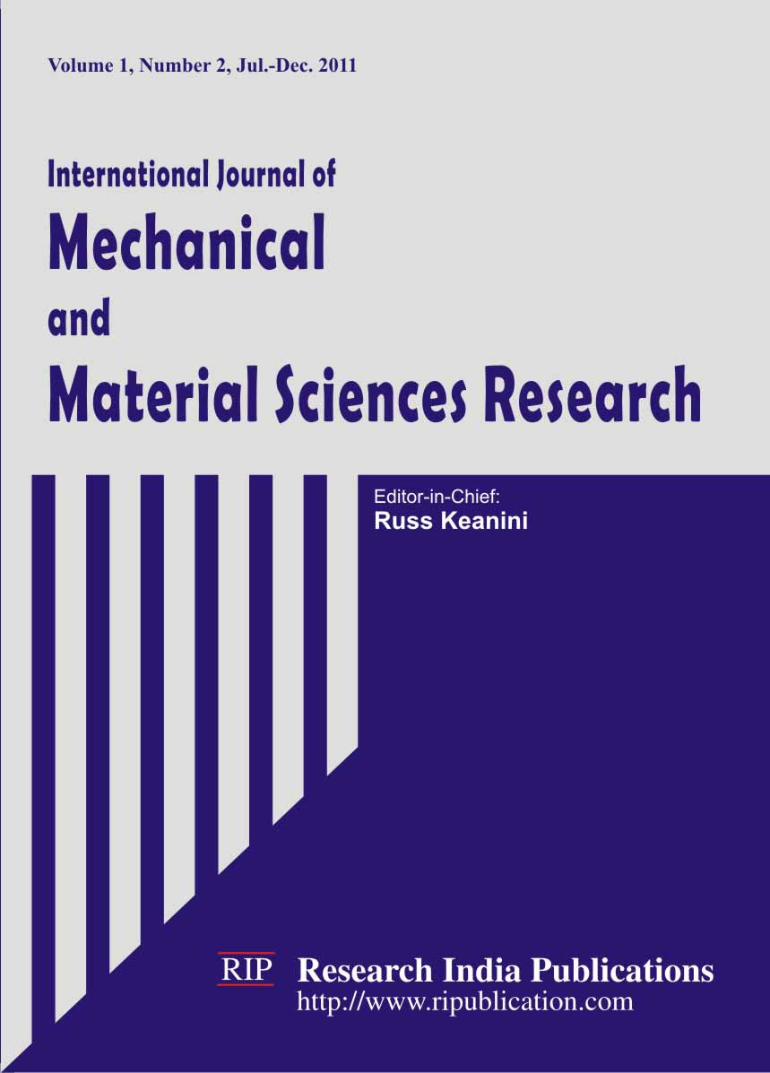International Journal of Mechanical and Material Sciences Research (IJMMSR) Editor-in-chief: Devi K. Kalla, Mechanical
