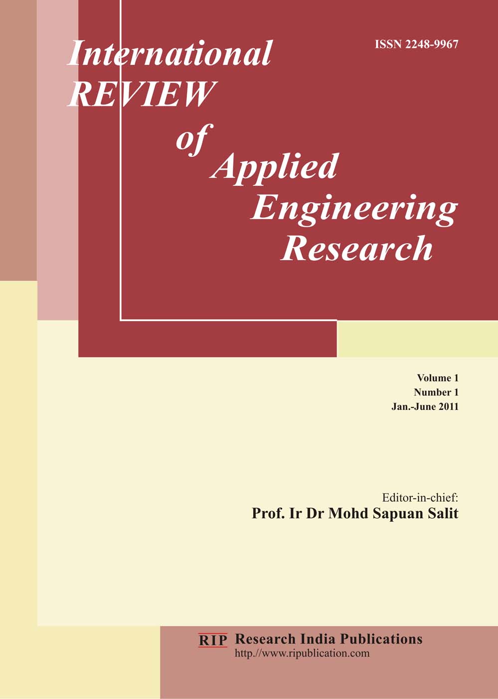 Aim and Scope: The International Review of Applied Engineering Research (IRAER) is an international research journal, which publishes top-level work from all areas of engineering sciences and technology. Areas includes (but not limited to) Engineering Mechanics, Construction Materials, Surveying, Fluid Mechanics & Hydraulics, Modeling & Simulations, Thermodynamics, Manufacturing Technologies, Refrigeration & Air-conditioning, Metallurgy, Automatic Control Systems, Electronic Communication Systems, Agricultural Machinery & Equipment, Mining & Minerals, Mechatronics, Applied Sciences, Public Health Engineering, Chemical Engineering, Hydrology, Structures and more....